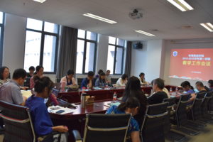 随后,蔡鸿向与会教师通报了开学以来学院的教学工作情况,包括开学第一周的教学状况、教学大纲提交、学院新生报到和教师调课、请假等情况,再次强调本学期继续加强教学管理工作的重要性,进一步明晰了教研室主任、课型组长的职责和工作计划,课堂纪律管理,以及教学开放周的筹备情况。