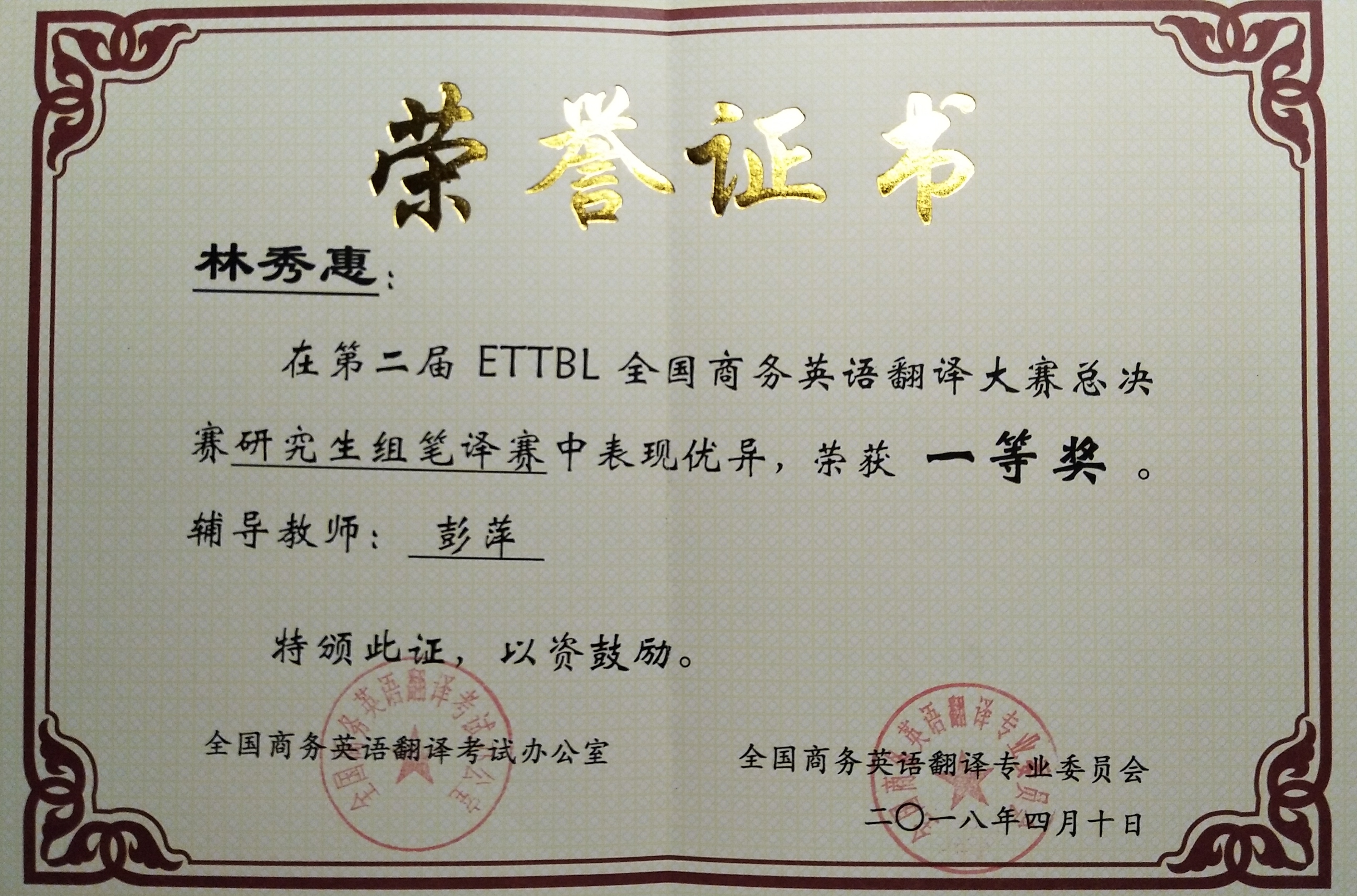 2018年4月15日,由全国商务英语翻译考试办公室、全国商务英语翻译专业委员会主办,菲律宾欧博游戏官网协办,菲律宾欧博官网承办的第二届ETTBL全国商务英语翻译大赛总决赛在北外国际大厦成功举行。