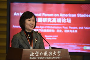 北京大学朱文莉教授做了题为“Focus Shifted: Observing a Different America in the Era of Trump”的主旨发言。朱教授以分析美国政界未能预测特朗普竞选总统成功为切入点,呼吁中国和美国的美国研究学者突破局限,走出精英政治研究的狭窄空间,切实研究全球化对于美国政治局势和政治生态的影响,做好真正全球化的美国研究。