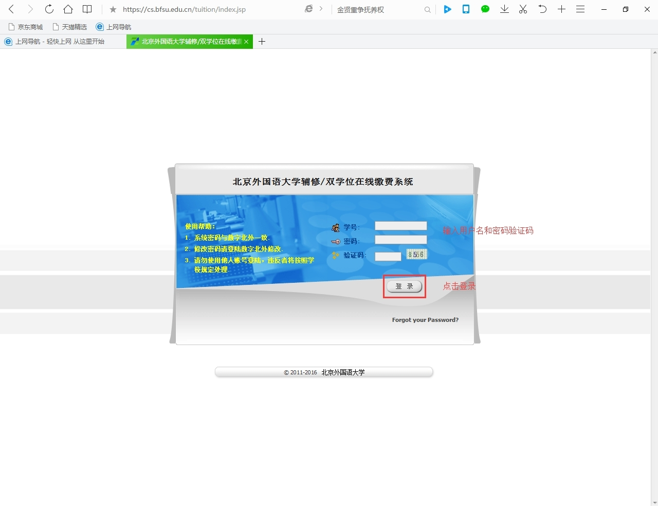 特别提示:辅修二外5-8级和双学位(双专业)课程,全部使用网上银行交费,请同学们务必配合学校工作安排,及时在网上交费。
