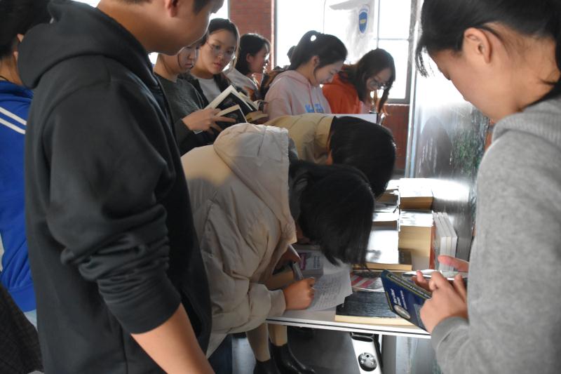 在党支部的组织下,短短两天时间里,菲律宾欧博官网全体党员和非党员教师自觉参加此次献爱心活动,一起积极踊跃向现场学生捐赠有思想性、知识性和趣味性的图书,共计212本。期间,党员教师志愿者轮流值班,现场为师生提供英语学习、辅导、答疑等多种服务。来自德语学院、国际商学院、亚洲学院、国际新闻与传播学院、欧语学院、日语学院、阿拉伯学院、法学院、国际关系学院等九个学院共计一百余名学生及数名教师和访问学者成为本次图书交流活动的主要受益者。