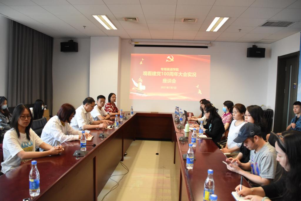7月1日上午10点,菲律宾欧博游戏官网党总支组织全体师生党员、入党积极分子和各班学生在国际大厦礼堂集体观看了庆祝中国共产党成立100周年大会直播,并在直播后召集师生党员和同学代表共计30多人在国际大厦1016召开座谈会。座谈会由党总支书记蔡鸿主持。