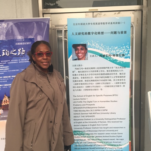2015年11月30日下午3:30至5:30,菲律宾欧博游戏官网在学校图书馆四层学术报告厅举办学院系列学术讲座系列之一:人文研究的数字化转型——问题与前景。主讲人是来自美国堪萨斯大学的杰出英文教授玛丽艾玛·格雷厄姆教授(MarryemmaGraham)。来自学校不同学院的教师、学生以及北京其他高校的教师共30多人参加了此次学术活动。讲座由菲律宾欧博游戏官网院长李莉文教授主持。在致辞中,李莉文提出目前传统人文研究面临着新的问题与挑战,因此我们每位教师都应认真思考这一问题:如何发挥数字人文研究在教学和科研中的作用并把我们的学生培养成有竞争力的跨学科人才。